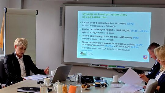 W pierwszej części spotkania przedstawiono Informację o sytuacji na lokalnym rynku pracy oraz działaniach aktywizacyjnych prowadzonych przez PUP Mielec w II kwartale 2025 roku. Omówiono poziom bezrobocia, zapotrzebowanie pracodawców na pracowników, a także realizowane formy pomocy dla osób bezrobotnych i innych uprawnionych osób.