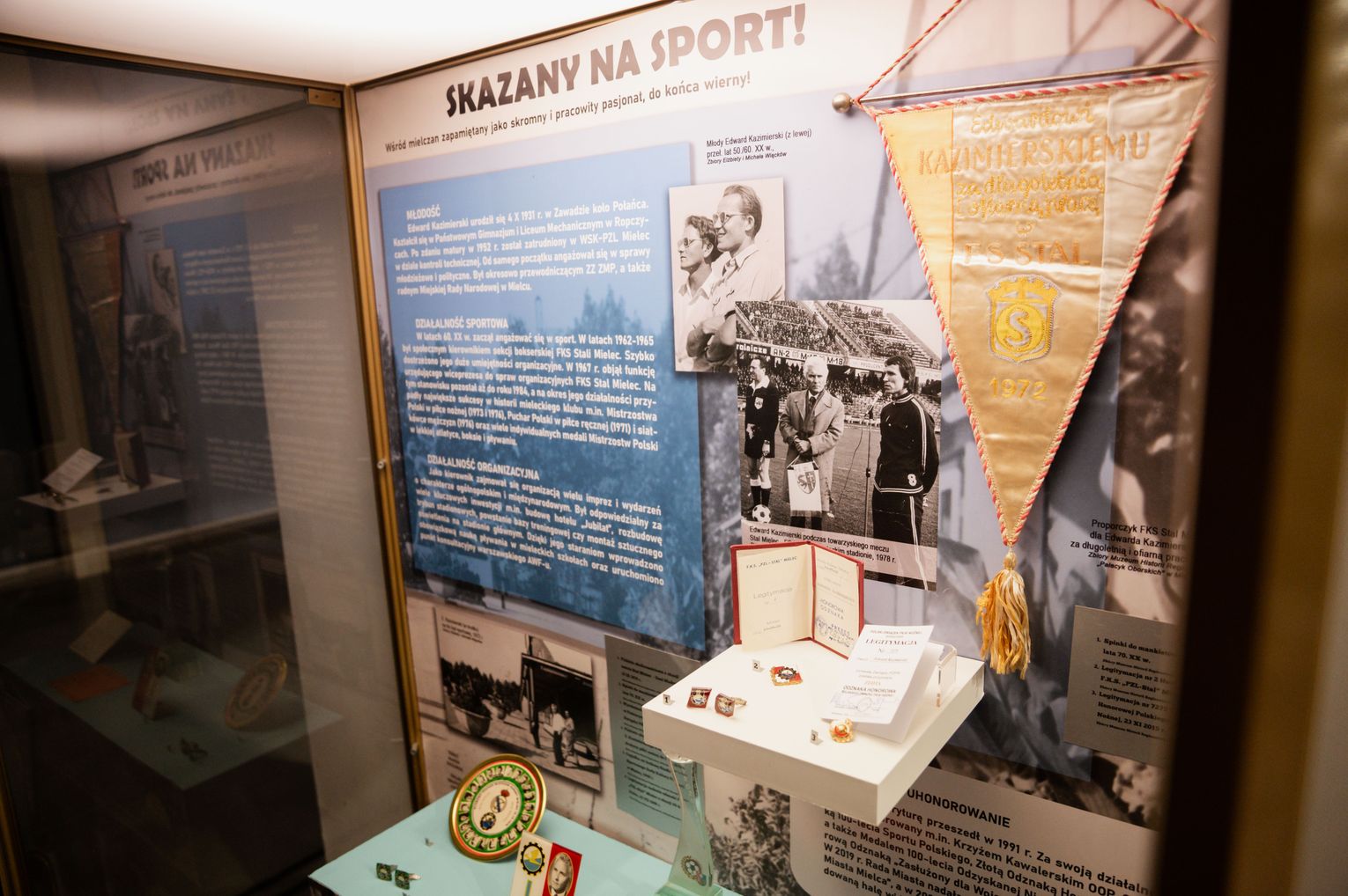 Ekspozycja „Skazany na sport!” została przygotowana przez Muzeum Historii Regionalnej „Pałacyk Oborskich” z okazji 50-lecia Miejskiego Ośrodka Sportu i Rekreacji. Jest złożona z pamiątek osobistych, medali, odznaczeń oraz archiwalnych fotografii i powstała ze zbiorów prywatnych Edwarda Kazimierskiego.