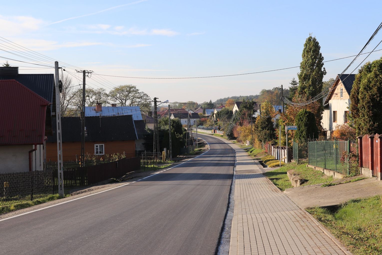 Zakres prac: Budowa drogi dla pieszych , wykonanie kanalizacji deszczowej , wzmocnienie konstrukcji jezdni (ok. 590 mb).