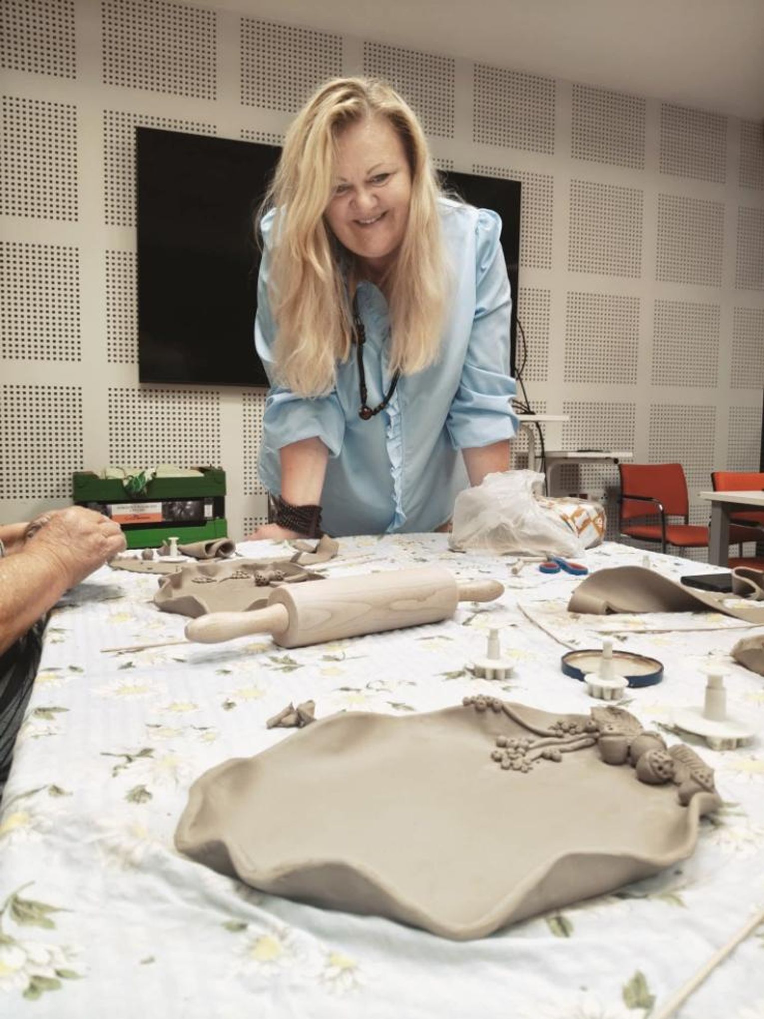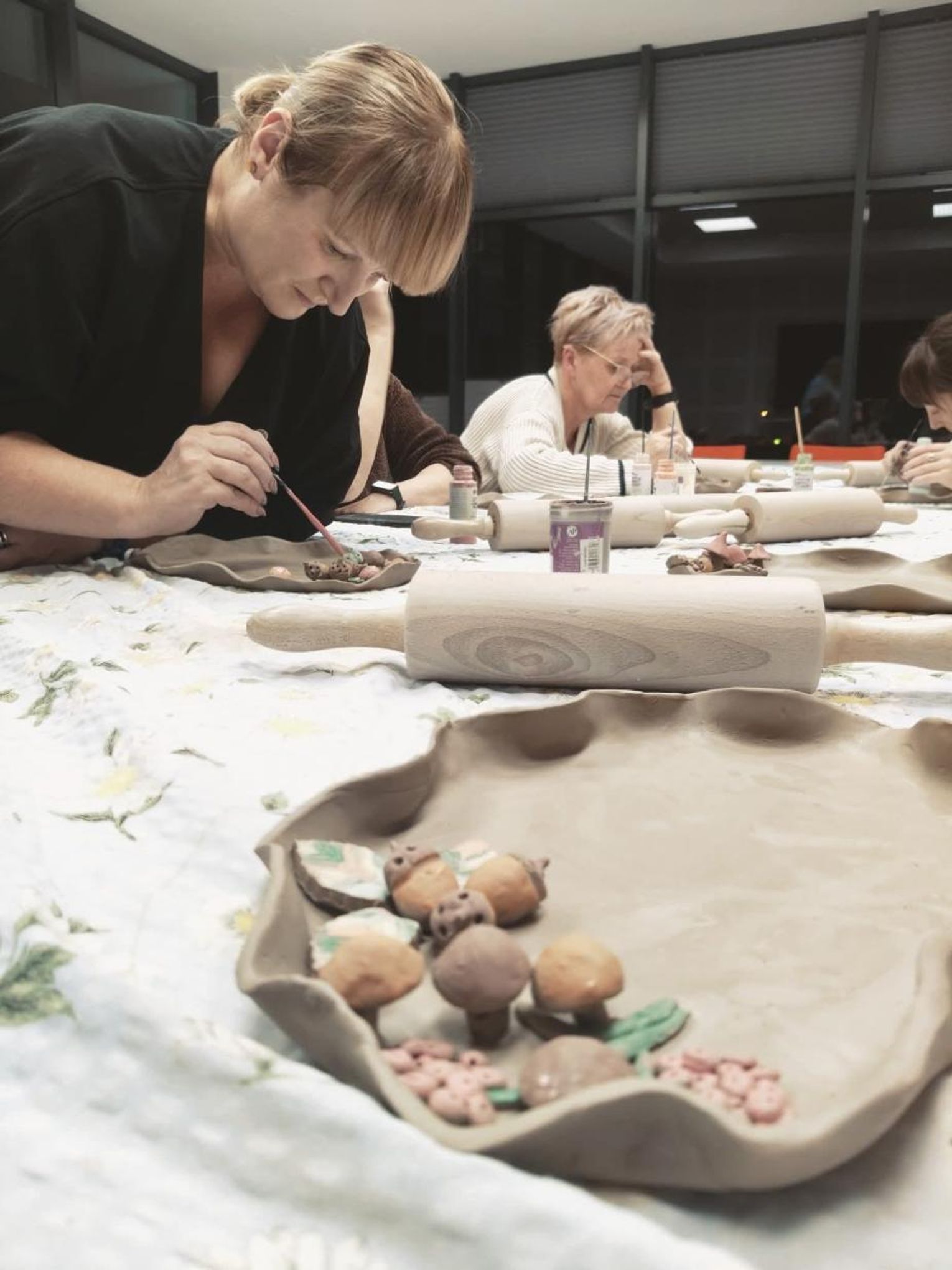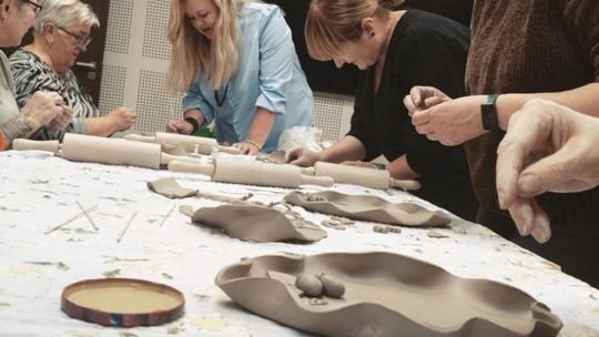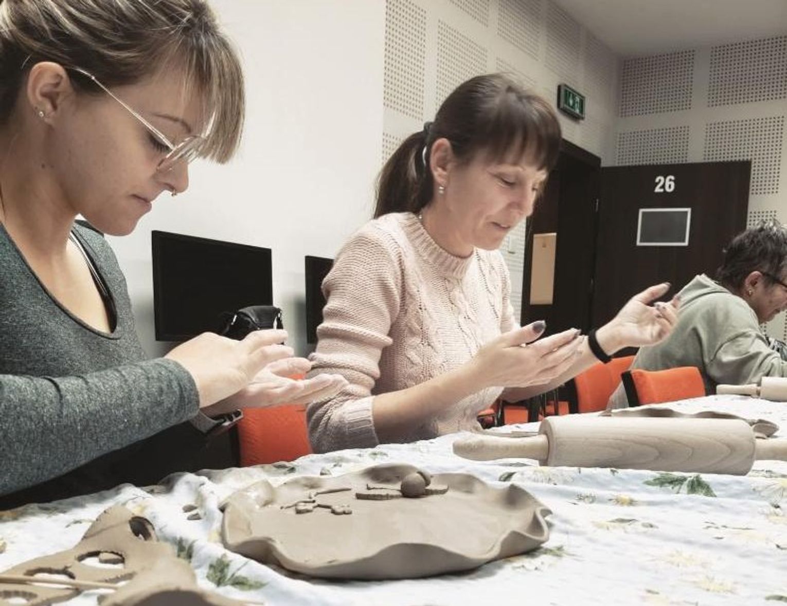 W poniedziałek 27 października w Dom Kultury w Przecławiu odbyły się wyjątkowe warsztaty ceramiczne dla dorosłych pod hasłem „Patera Jesienna”. Uczestnicy, pod okiem instruktora, tworzyli niepowtarzalne, inspirowane jesienną naturą patery z gliny – ozdobione liśćmi, fakturami i ciepłymi barwami tej pory roku.