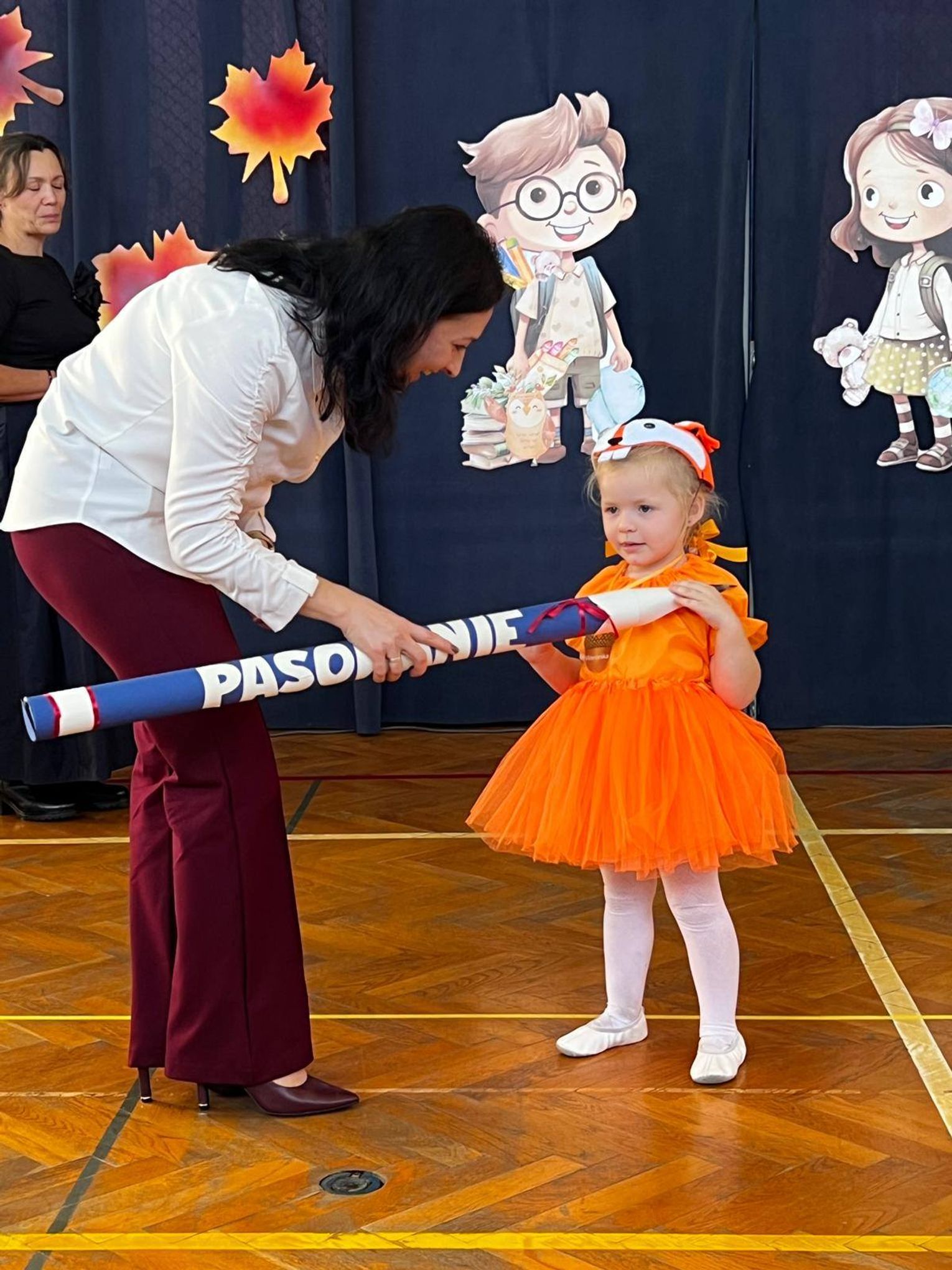 Najważniejszym momentem uroczystości było symboliczne pasowanie na przedszkolaka – każdy z najmłodszych został oficjalnie przyjęty do przedszkolnej rodziny.