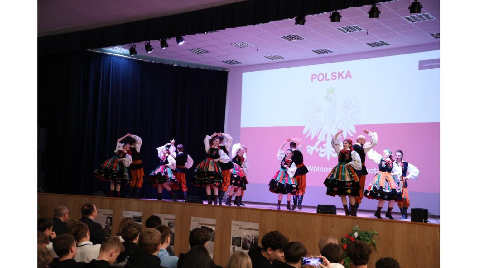 Efektowne i jak zawsze piękny tańce w wykonaniu Zespołu Pieśni i Tańca Rzeszowiacy. Tym tanecznym akcentem uświetniono uroczystość obchodów Święta Niepodległości 11 listopada w Zespole Szkół Technicznych w Mielcu.