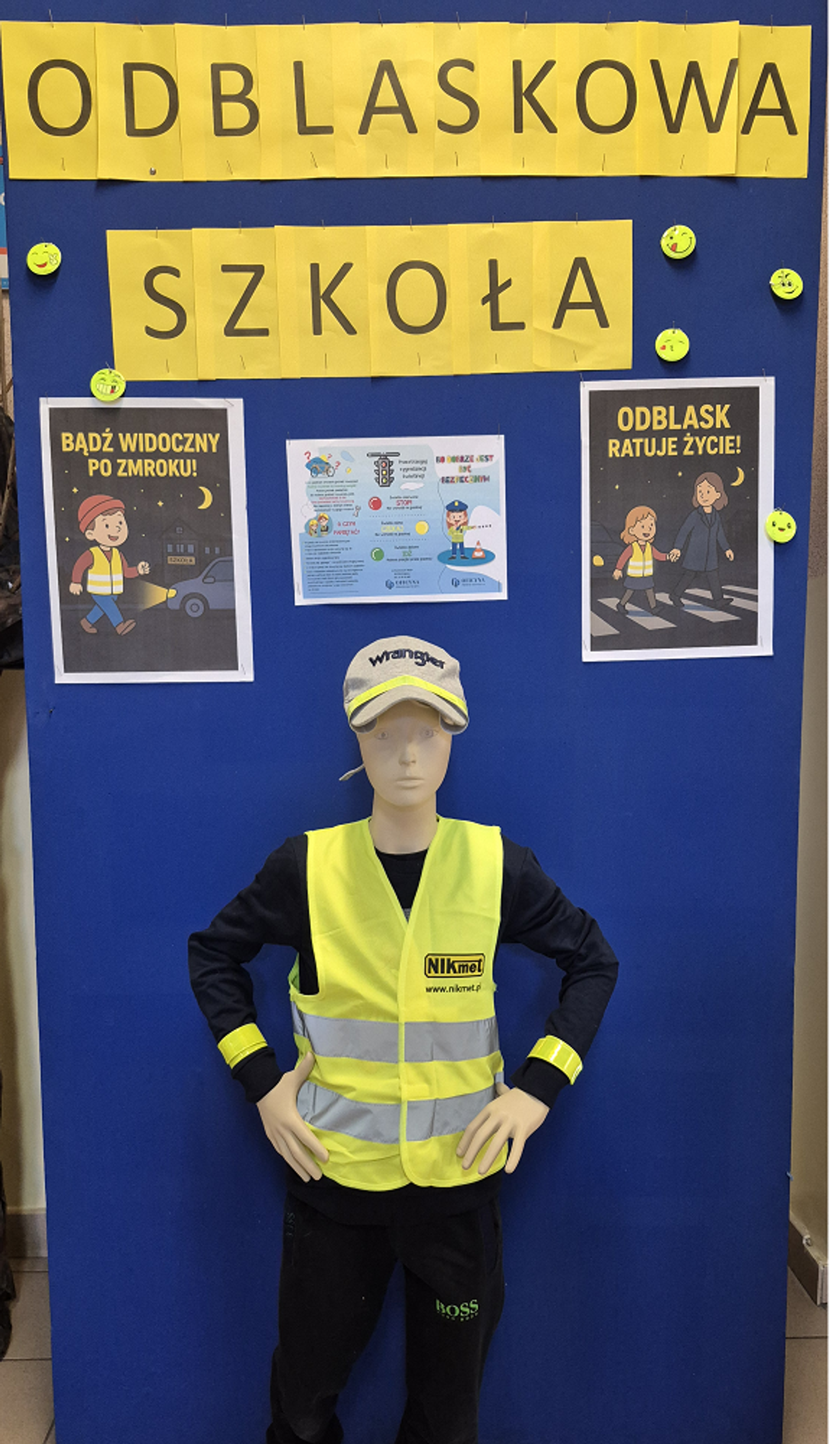 Dodatkowo zorganizowano wyjście w okolice szkoły, podczas którego uczniowie uświadamiali seniorów o znaczeniu noszenia odblasków po zmroku i obdarowywali ich elementami odblaskowymi. Dzięki tym inicjatywom cała społeczność szkolna aktywnie włączyła się w promowanie bezpieczeństwa na drodze.