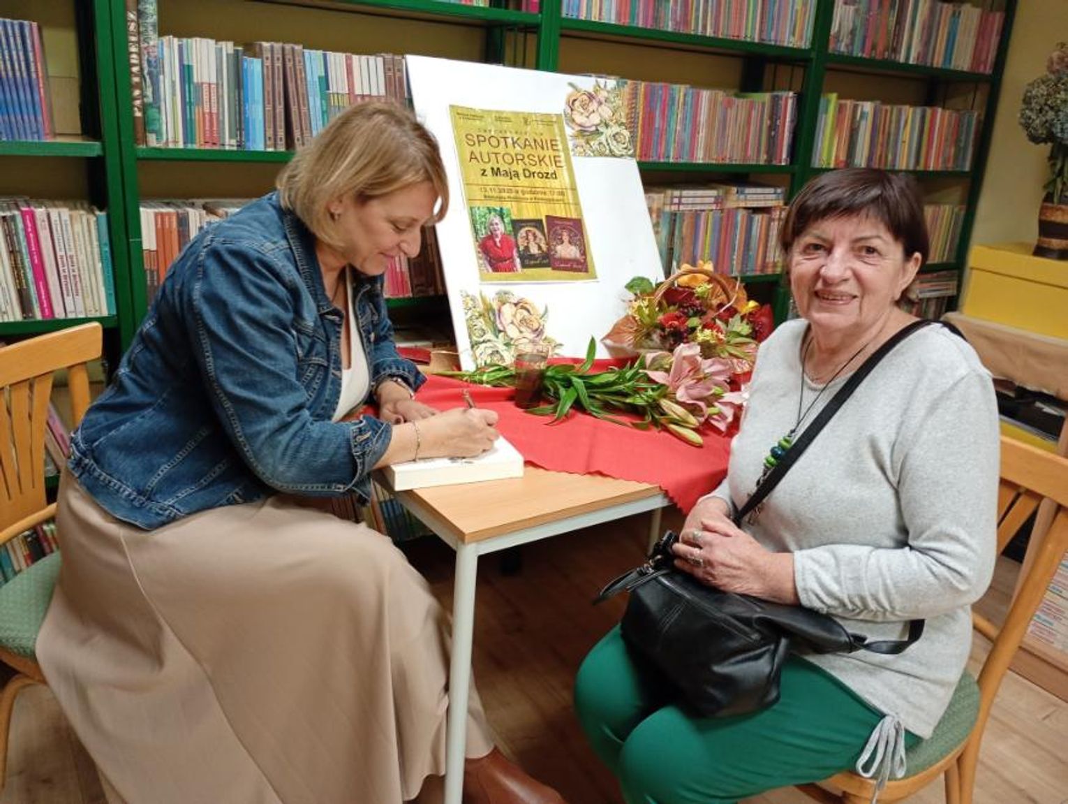 Maja Drozd podarowała również dla biblioteki w Podleszanach egzemplarz „Zapachu lasu” z piękną dedykacją dla czytelników.