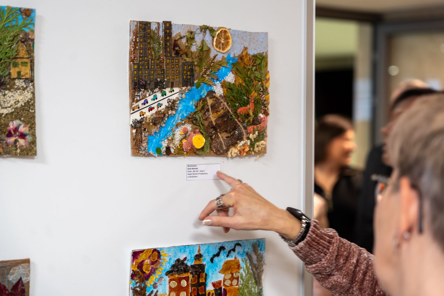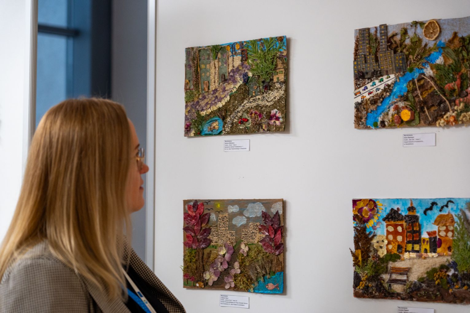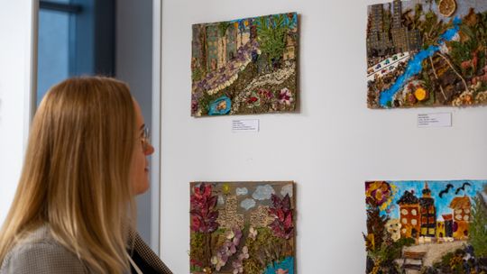 Na wystawie znalazły się prace z konkursu, który dotyczył obchodzonego corocznie, 20 października Dnia Krajobrazu. A jego tegoroczne hasło przewodnie brzmi: „Symbioza – Przyroda i Miasto w jednym Krajobrazie!”. Tematem przewodnim konkursu był więc krajobraz naszych miast, a wymaganą techniką plastyczną był kolaż z wykorzystaniem fragmentów elementów z natury.