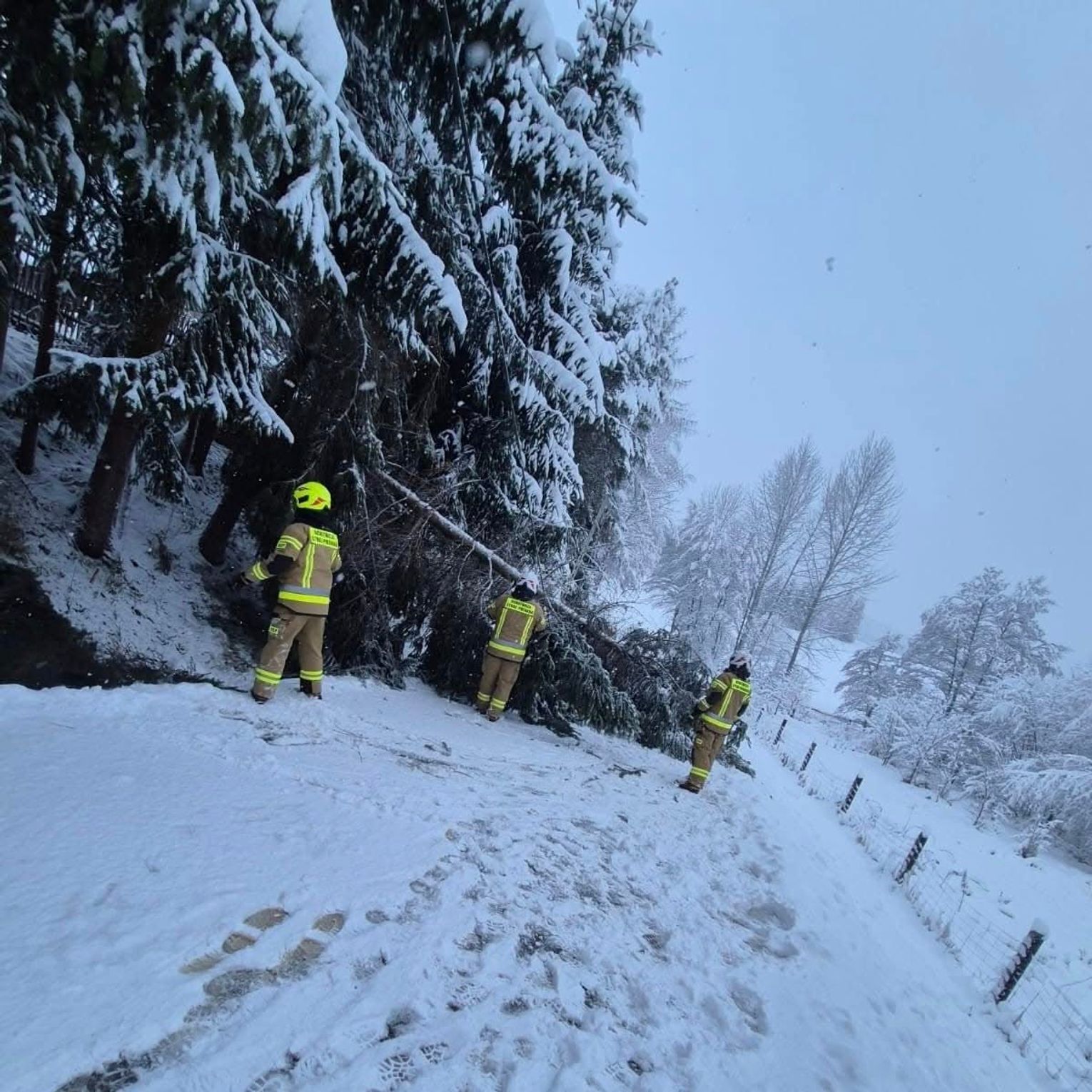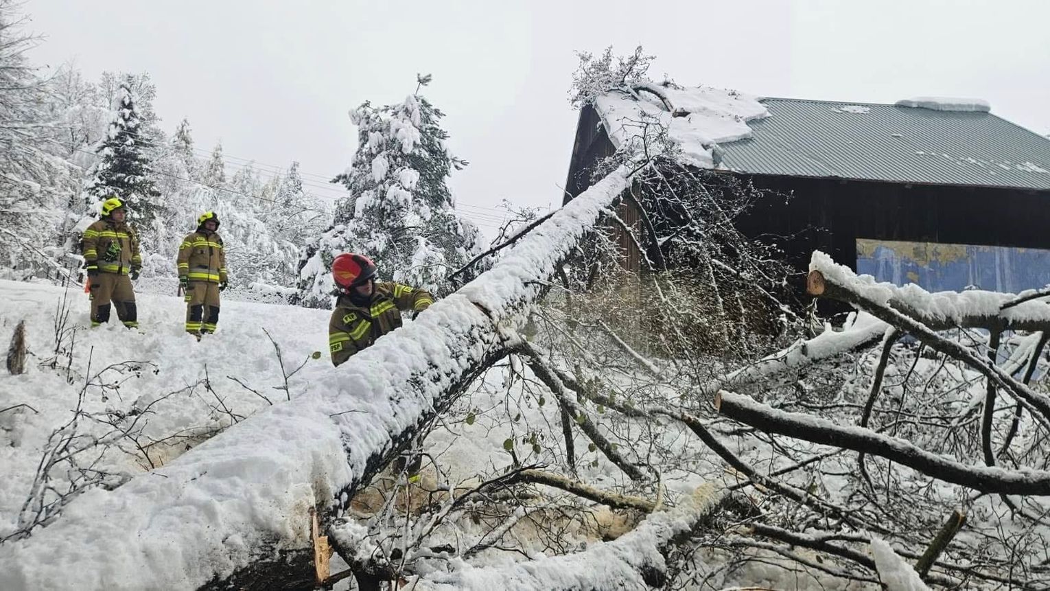 Działania strażaków polegały przede wszystkim na usuwaniu przewróconych drzew i gałęzi, które łamały się pod naporem mokrego śniegu i silnych podmuchów wiatru.