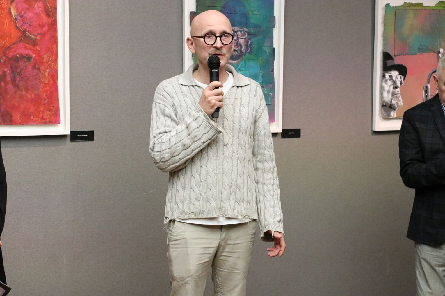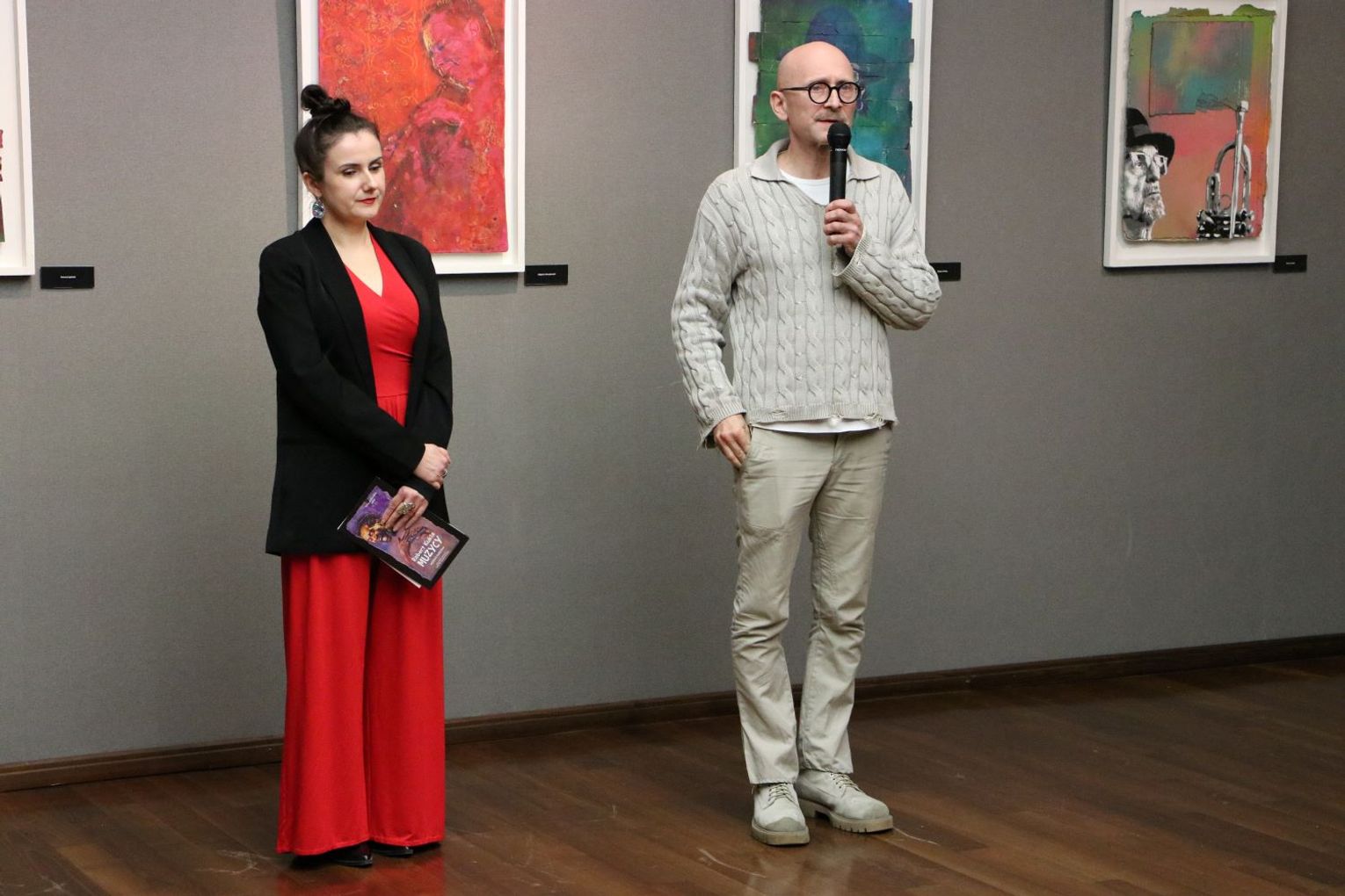 Podczas wernisażu autor wystawy, Robert Kukla, opowiadał o początkach swojego cyklu o muzykach. Pierwsze portrety namalował po festiwalu jazzowym w Świdnicy (tam mieszka i pracuje malarz), ale jego upodobania muzyczne z czasem poszerzyły się i obecnie pracuje nad obrazami, których bohaterowie wywodzą się np. z muzyki hip-hopowej. – Jestem portrecistą i muralistą – mówił podczas dzisiejszego wernisażu w Mielcu, nawiązując do murali w wielu miastach Polski, których jest autorem. – Maluję na tekturach, płytach pilśniowych, plecionkach z użyciem farb olejnych, akrylowych, bardzo lubię spraye – przybliżał szczegóły swojego warsztatu artysta. – Te prace są różnorodne, bo moje upodobania szybko się zmieniają. Szybko się nudzę – mówił.