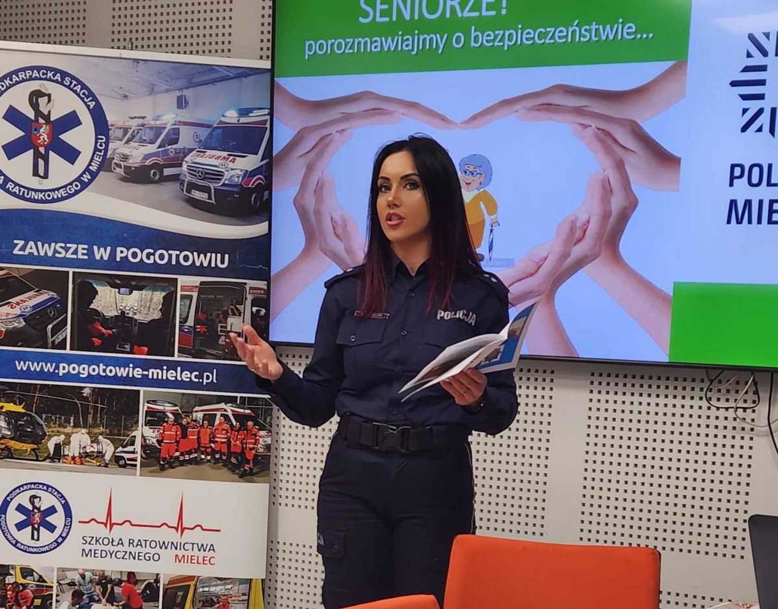 · Szczególną uwagę poświęcono seniorom. Przedstawiono algorytmy postępowania w przypadku potencjalnego zagrożenia oszustwem „na wnuczka” czy „na policjanta” oraz kampanię „#JestemTuCZEKAM”, mającą na celu szybkie odnajdywanie osób zaginionych, szczególnie w podeszłym wieku.
