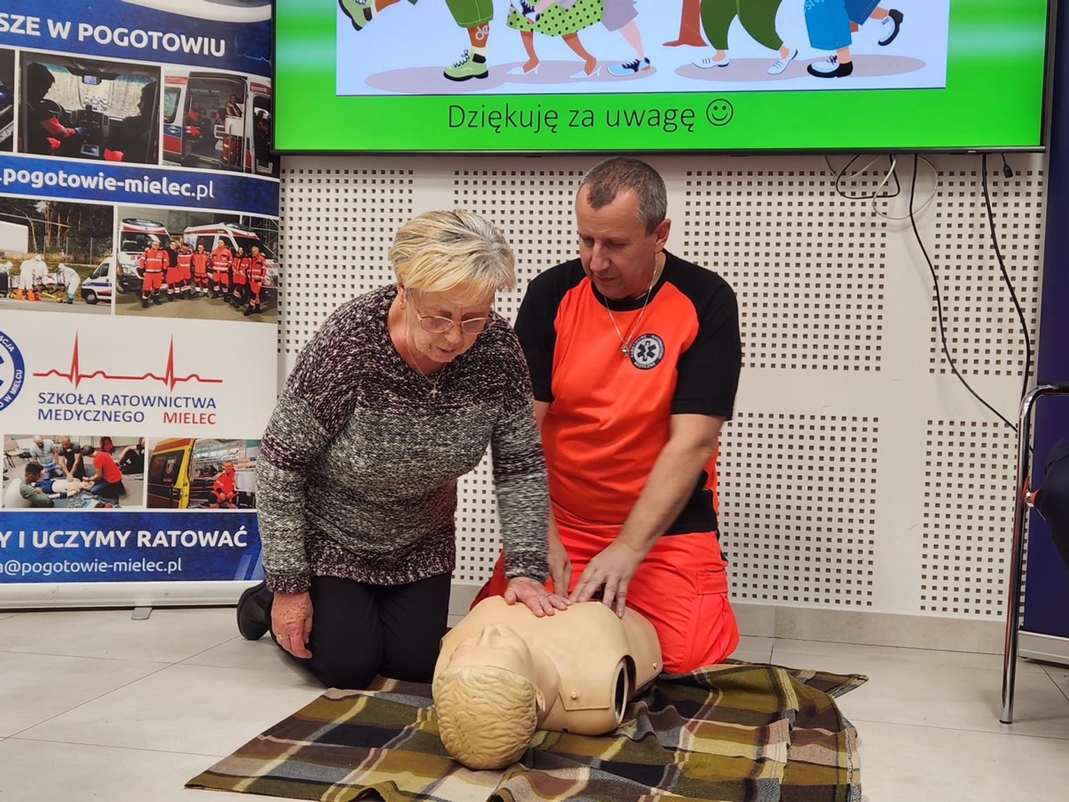 Debata miała nie tylko teoretyczny, ale i niezwykle praktyczny wymiar. Głos zabrał również ratownik medyczny z Podkarpackiej Stacji Pogotowia Ratunkowego w Mielcu - Maciej Rachwał, który przybliżył zasady udzielania pierwszej pomocy w przypadku zatrzymania czynności życiowych. Uczestnicy mogli zobaczyć i samodzielnie przećwiczyć na fantomach resuscytację krążeniowo-oddechową (RKO), zdobywając bezcenne umiejętności, które w krytycznej sytuacji mogą uratować czyjeś życie.