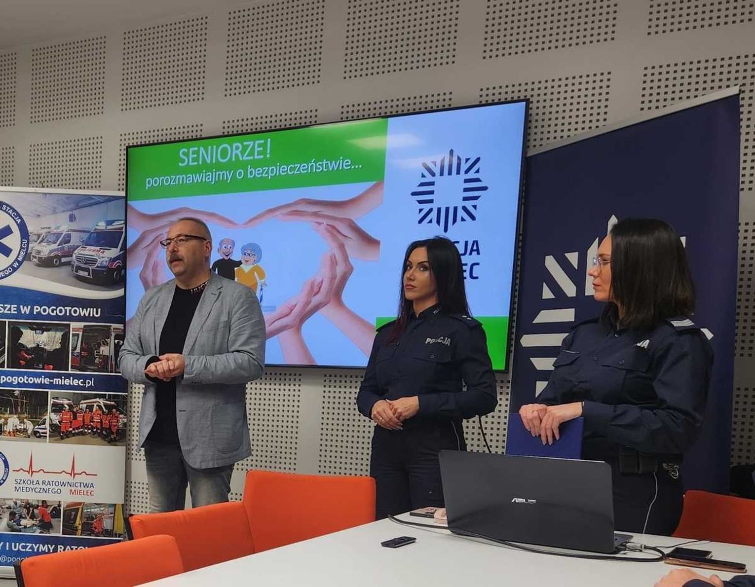 W gronie prelegentów znalazł się również Lucjan Łazarz - Kierownik Miejskiego Ośrodka Pomocy Społecznej w Przecławiu, który omówił kluczowe aspekty przeciwdziałania przemocy w rodzinie. W swoim wystąpieniu szczegółowo przedstawił tematykę przemocy domowej oraz zasady ścisłej współpracy MOPS z Policją na rzecz osób dotkniętych przemocą. Jego obecność podkreśliła, jak ważna jest instytucjonalna współpraca i kompleksowe wsparcie dla ofiar.