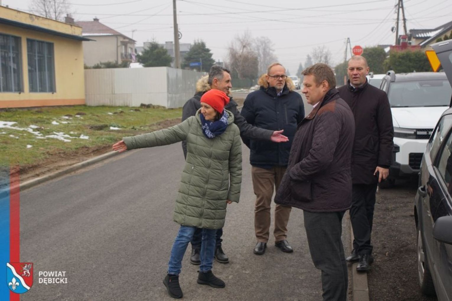 Obecni przy odbiorze Starosta Powiatu Dębickiego Piotr Chęciek i Wójt Gminy Dębica Adam Pieniążek ocenili jakość wykonania remontu, omówili także jego znaczenie dla poprawy bezpieczeństwa i komunikacji mieszkańców.