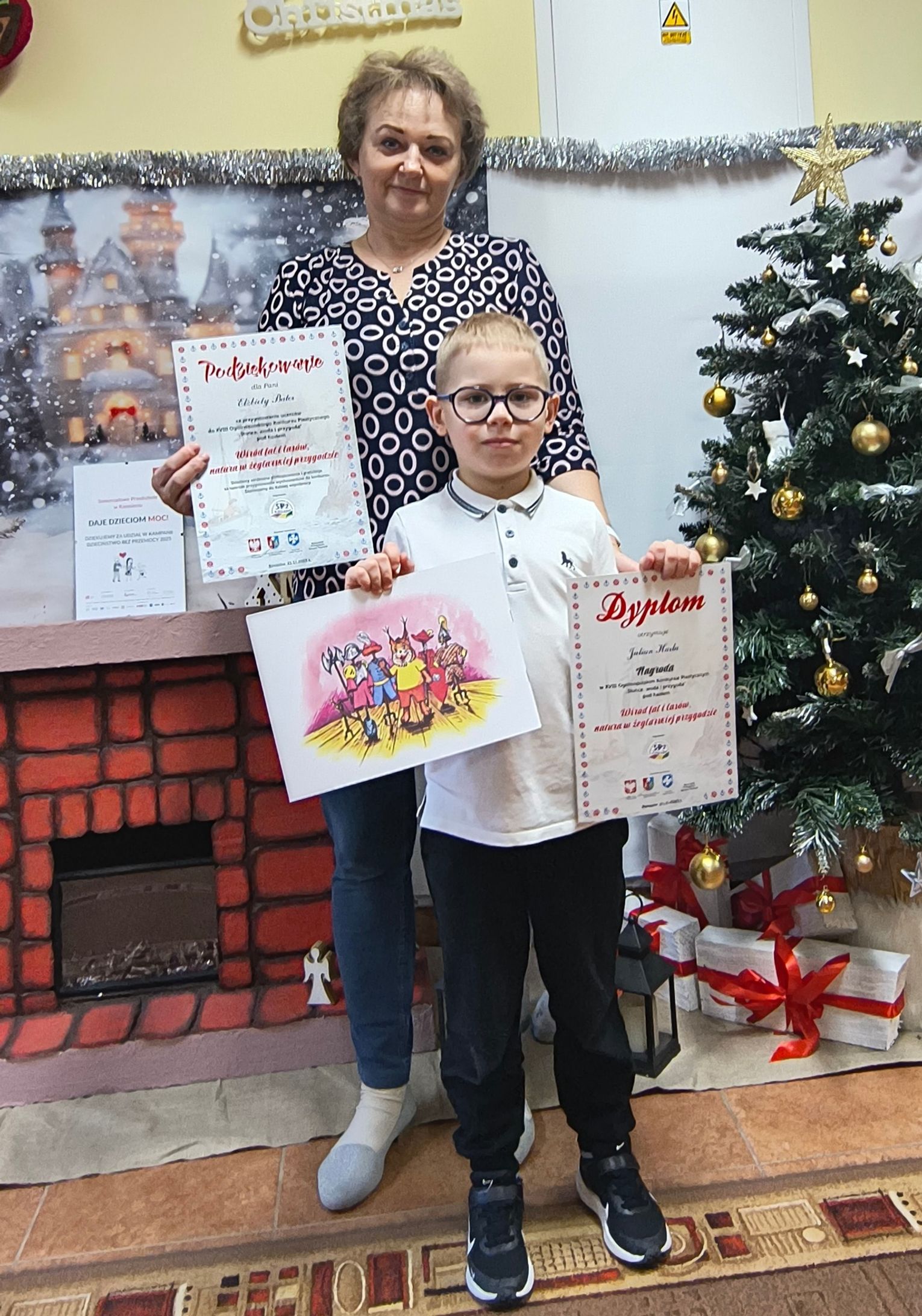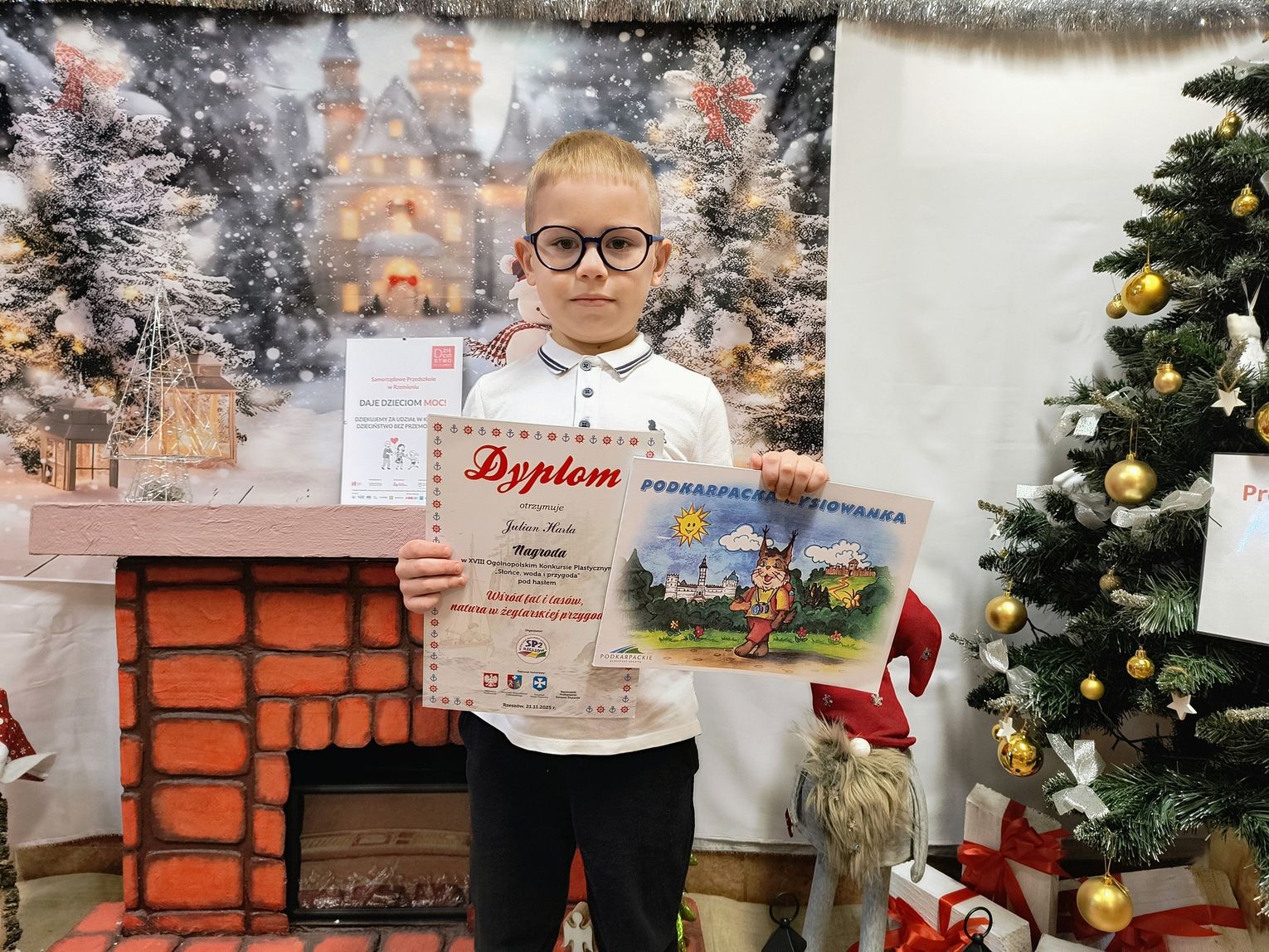 Jury docenia także wybitne zdolności plastyczne, ciekawe pomysły czy techniki, przyznając nagrody specjalne. Uroczyste ogłoszenie wyników i rozdanie nagród nastąpiło podczas Dziecięcego Festiwalu Marynistycznego Rzeszowski Żagielek. Praca została przygotowana pod okiem nauczycielki Elżbiety Bator. Gratulujemy Julianowi tak wielkiego osiągnięcia i reprezentowania przedszkola na forum ogólnopolskim!