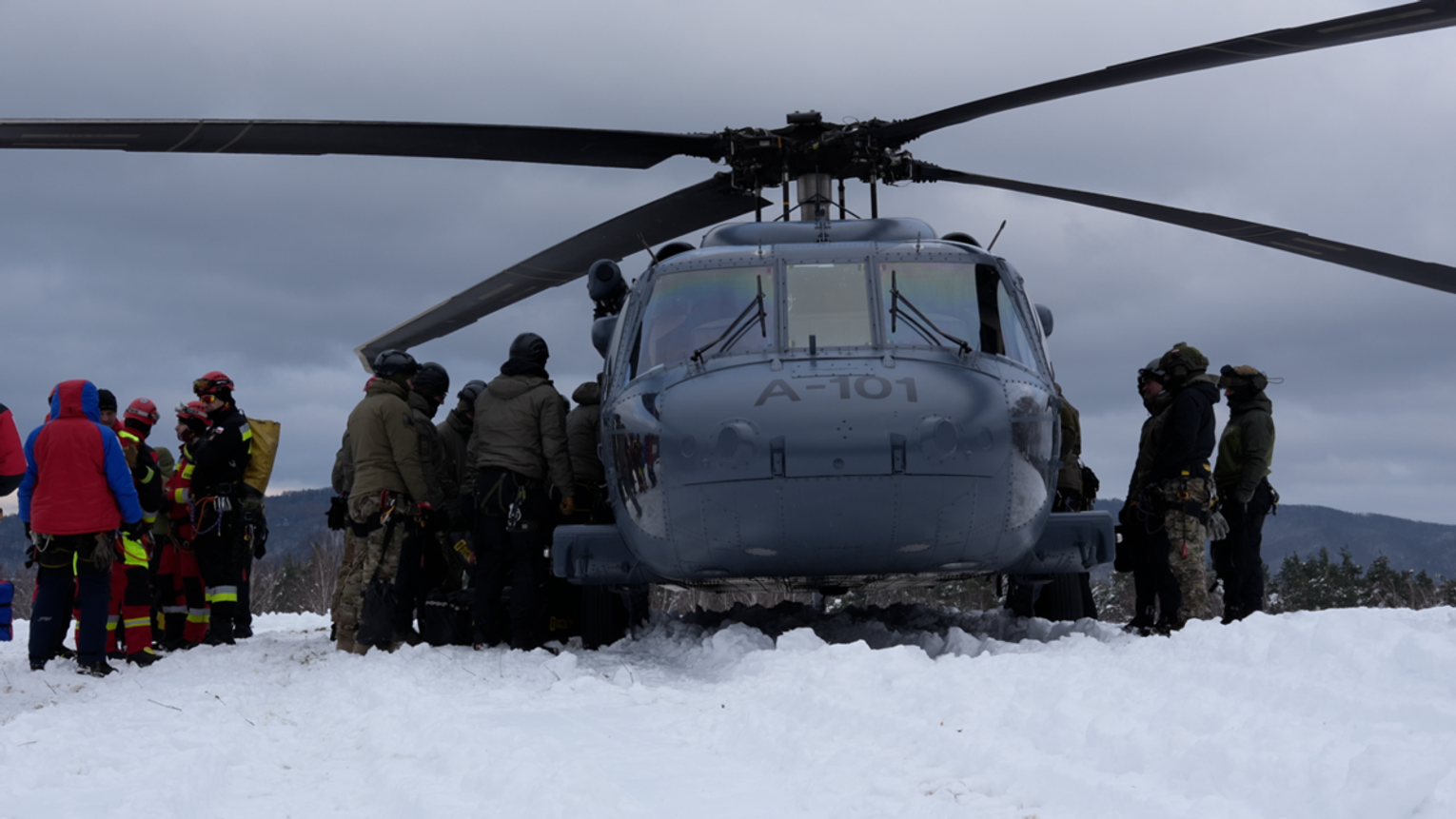 Istotnym elementem ćwiczeń były działania taktyczne z udziałem policyjnego śmigłowca S-70i Black Hawk. Załoga prowadziła desanty z powietrza, wsparcie operacyjne oraz przeloty w wymagającym terenie. Dzięki temu możliwe było odwzorowanie sytuacji zbliżonych do realnych zdarzeń, wymagających dynamicznej reakcji i ścisłej współpracy pododdziałów działających na lądzie i z powietrza.