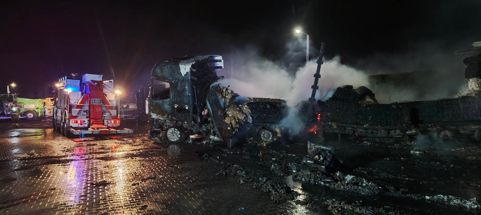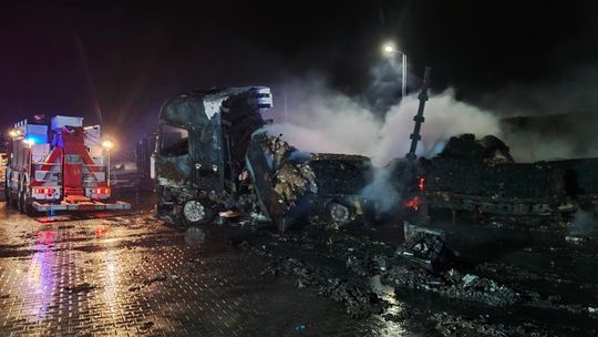 6 zestawów (ciągnik siodłowy wraz z naczepą) uległo spaleniu,