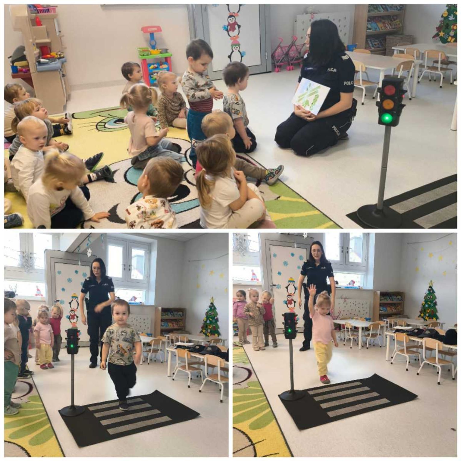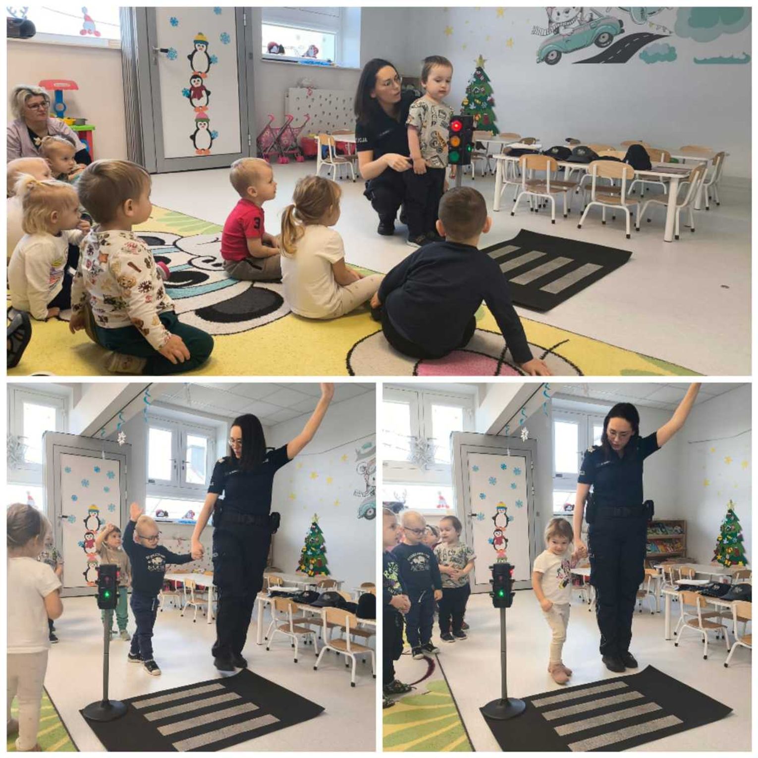 Spotkanie odbyło się w przyjaznej, dostosowanej do wieku przedszkolaków atmosferze. Mundurowa, wykorzystując materiały wizualne i zabawę, przekazała dzieciom najważniejsze zasady bezpieczeństwa.