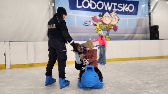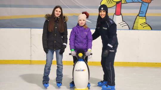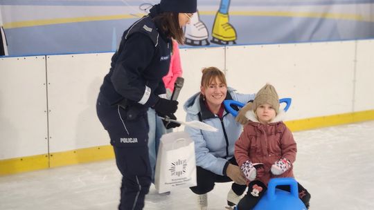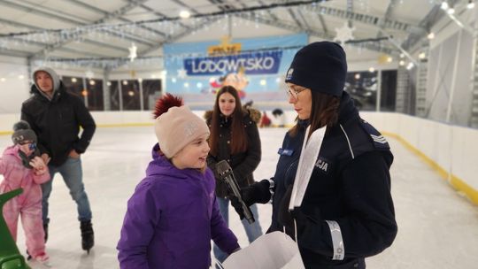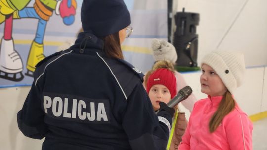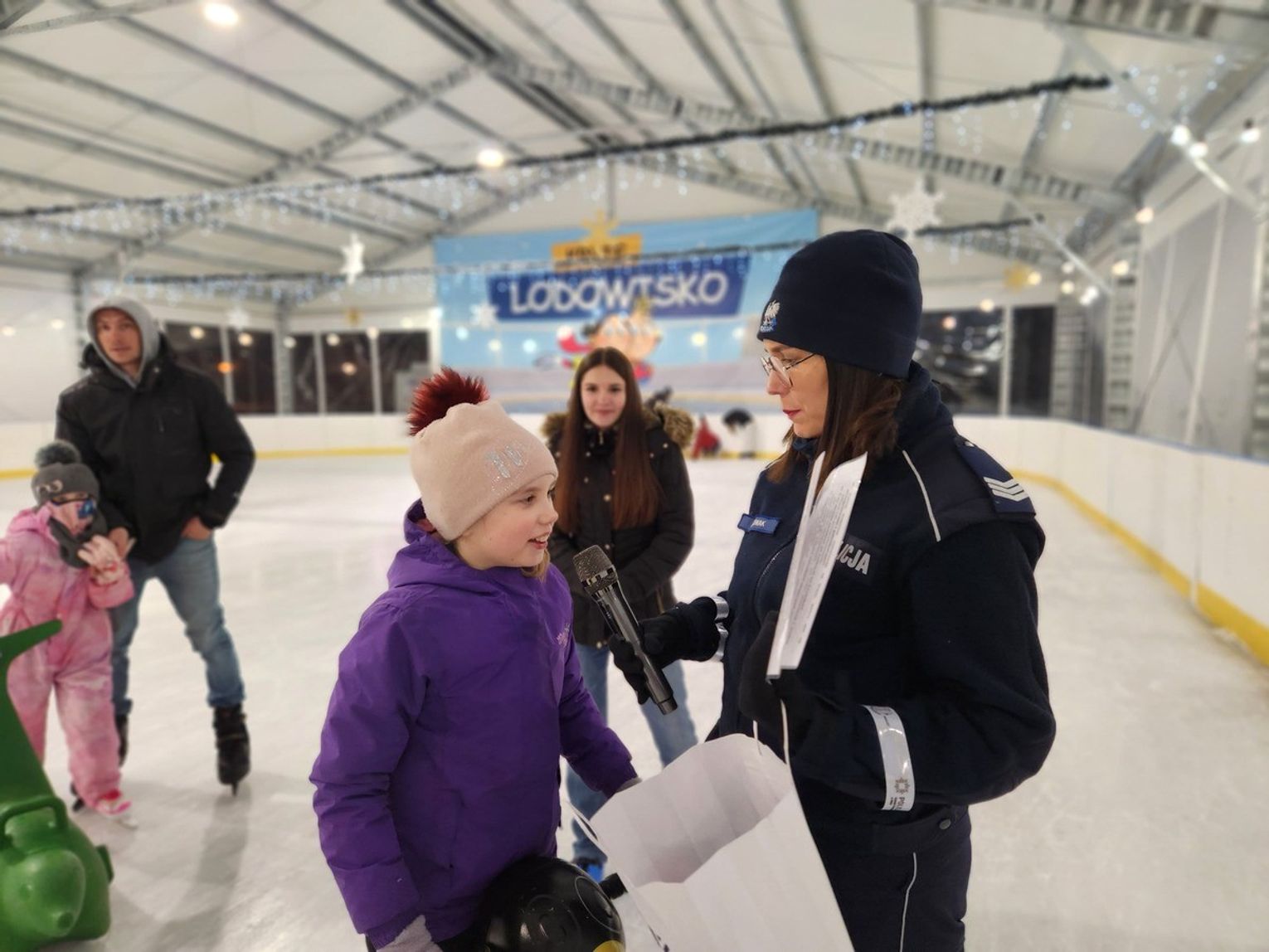 - bezpieczny sprzęt i kontrola prędkości: podczas rozmów podkreślały konieczność korzystania z kasków ochronnych, zwłaszcza przez osoby początkujące i dzieci. Funkcjonariuszki przypominały także, że lodowisko to nie tor wyścigowy – nadmierna prędkość i brawura zagrażają zarówno jadącemu, jak i innym użytkownikom,