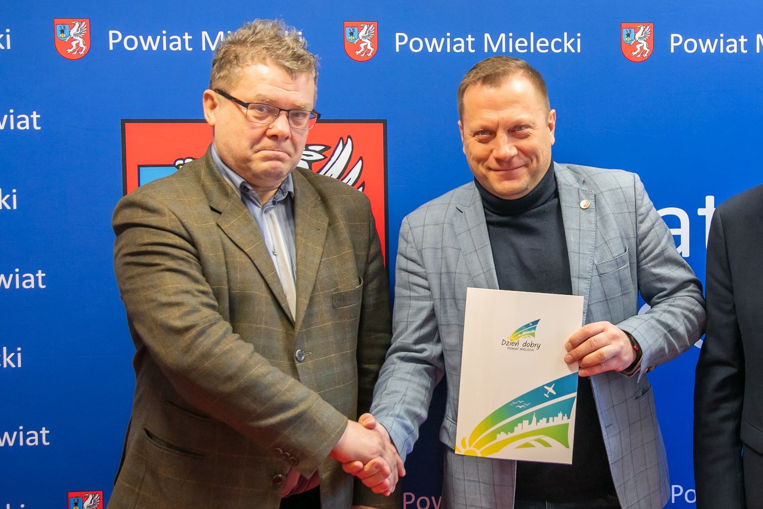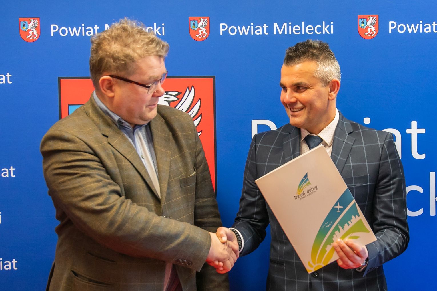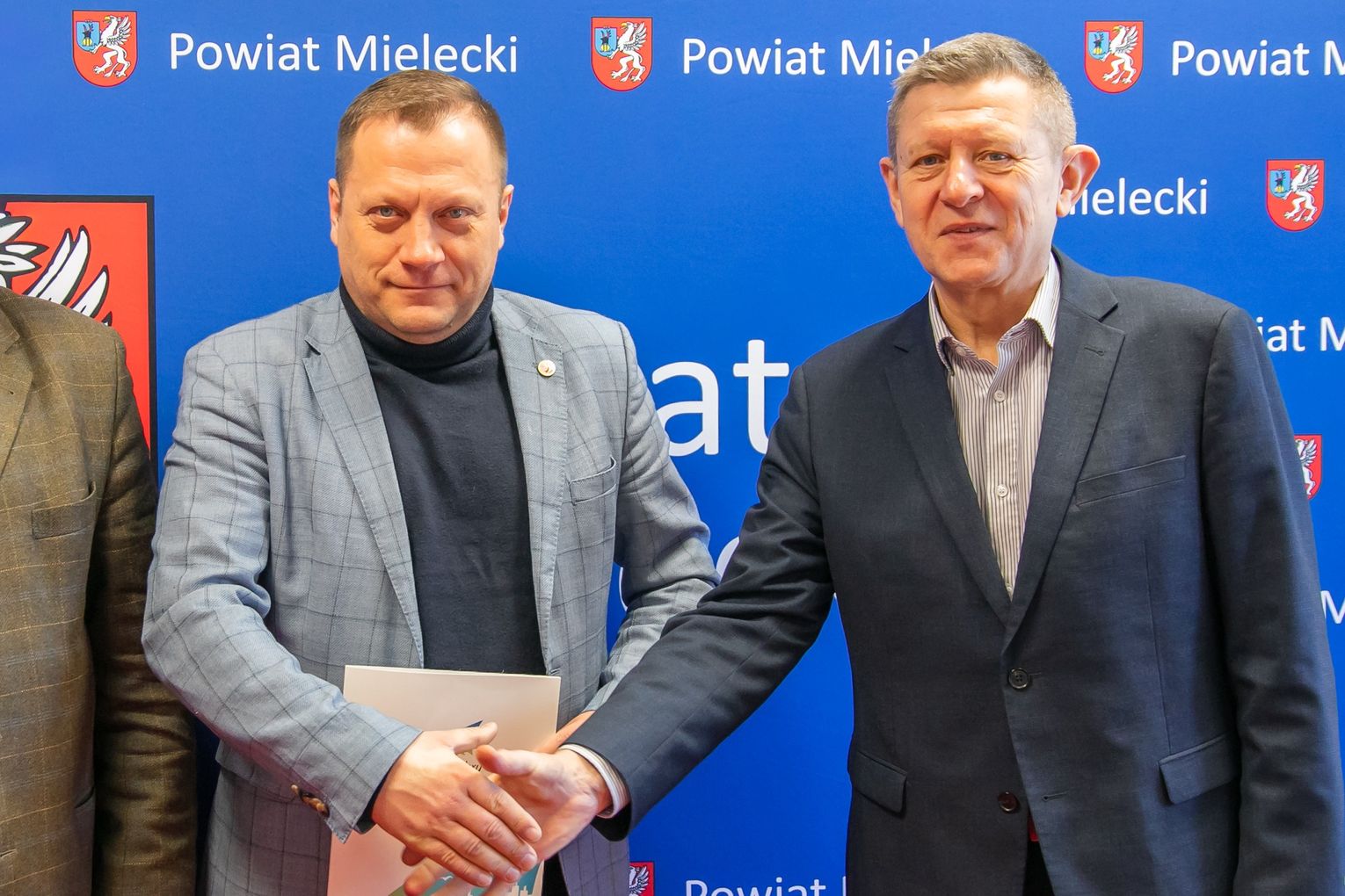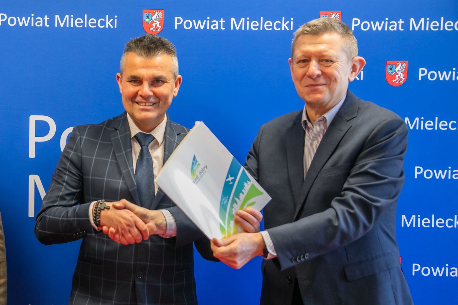 W podpisaniu umowy udział wzięli przedstawiciele władz samorządowych Powiatu Mieleckiego: Starosta Powiatu Mieleckiego Kazimierz Gacek, Andrzej Bryła - Wicestarosta Powiatu Mieleckiego