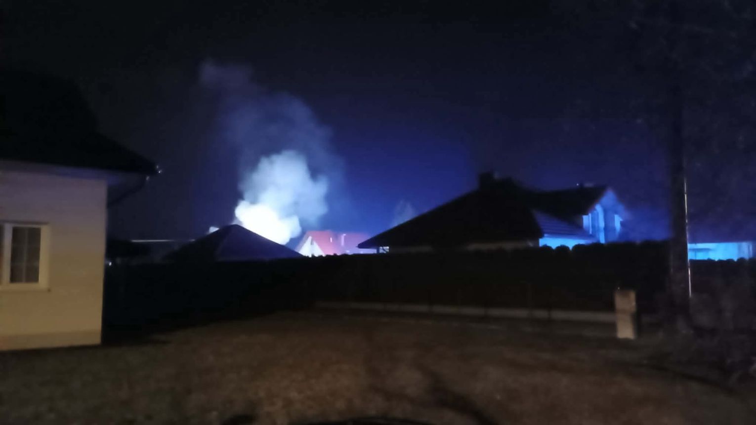 Strażacy ze względu na duże zadymienie pracują w aparatach dróg oddechowych, akcja gaśniczą nie jest łatwa ze względu dużą powierzchnię objętego ogniem dachu oraz siana znajdującego się w budynku gospodarczym. Akcja gaśnicza może potrwać kilka godzin, dym unoszący się nad miejscowością jest nadal widoczny z kilkuset metrów. Na chwilę obecną brak informacji o osobach poszkodowanych.