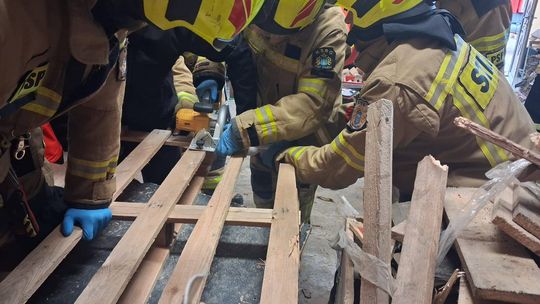 Dzięki szybkiej reakcji służb ratunkowych poszkodowany pracownik został sprawnie uwolniony i przetransportowany do placówki medycznej. Jego dalszy stan zdrowia oraz zakres obrażeń będą oceniane przez lekarzy w szpitalu.