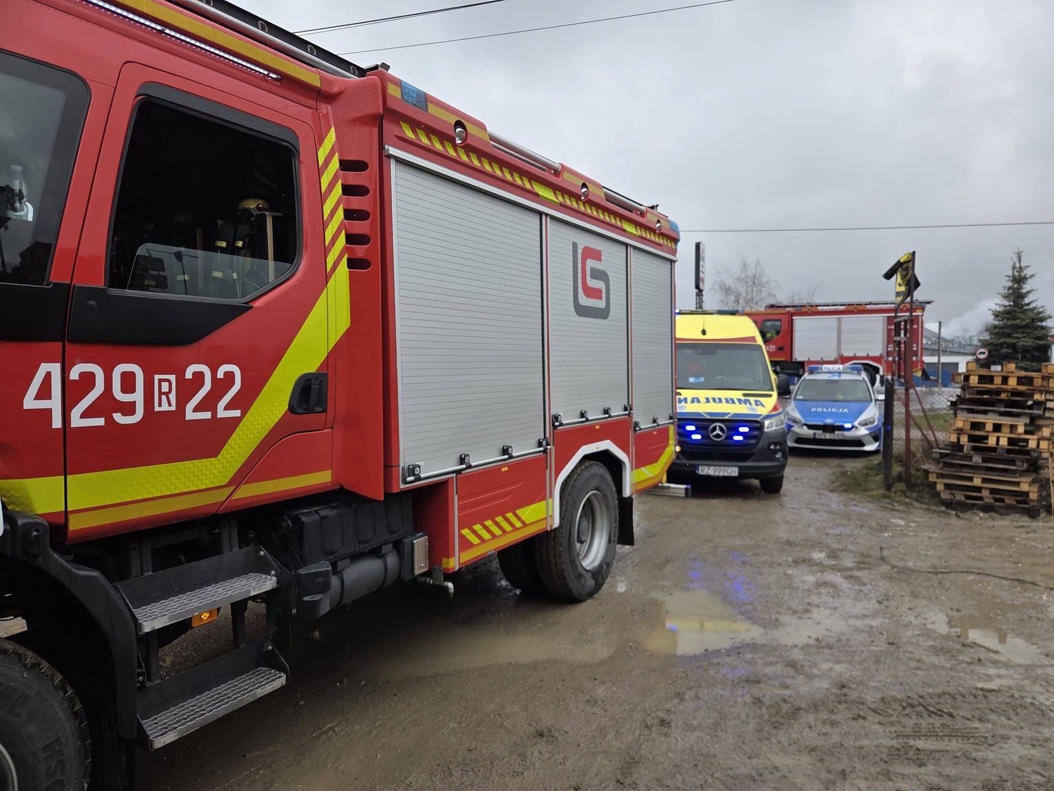 Na miejscu interweniował również patrol policji. Funkcjonariusze prowadzą czynności mające na celu ustalenie dokładnych okoliczności i przebiegu wypadku w zakładzie pracy.