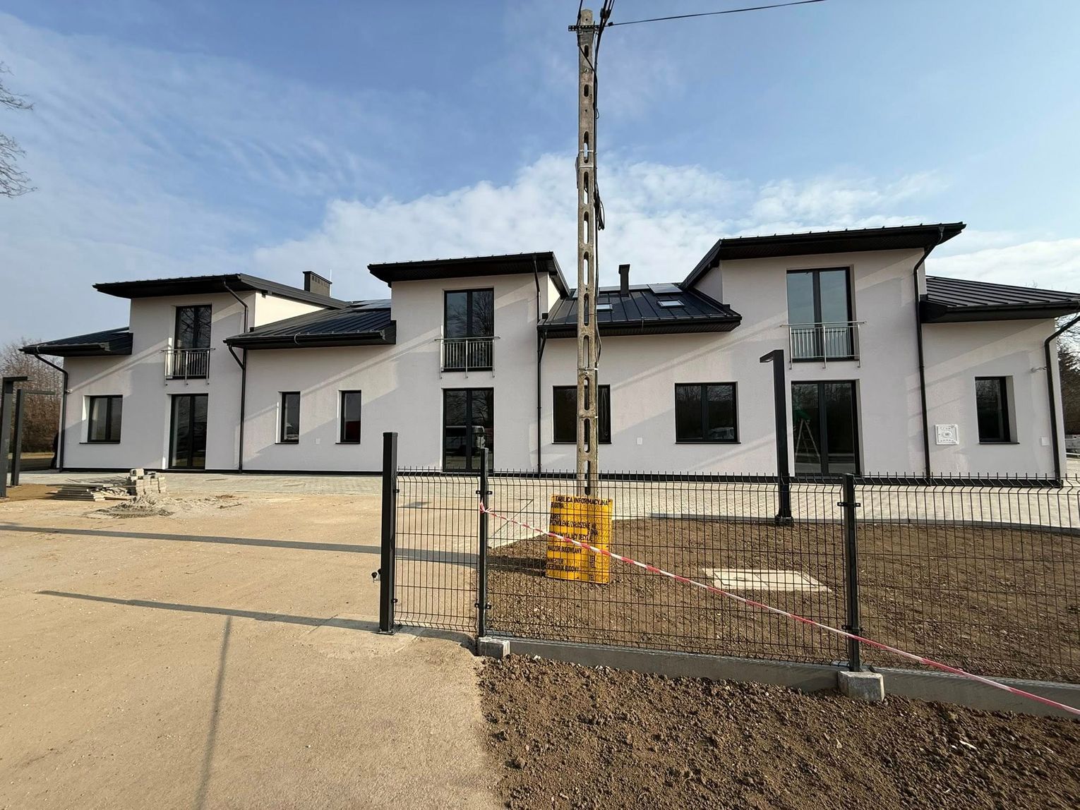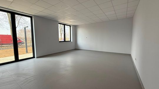 Elewacja jest gotowa, teren wokół budynku został zagospodarowany, a wewnątrz trwają już końcowe prace wykończeniowe.