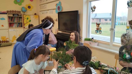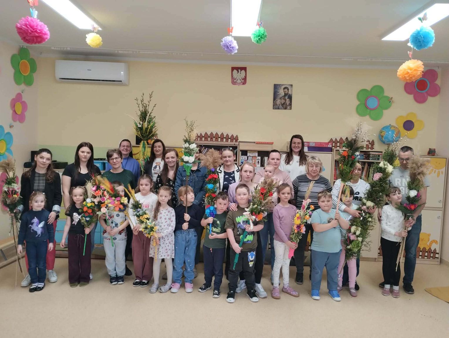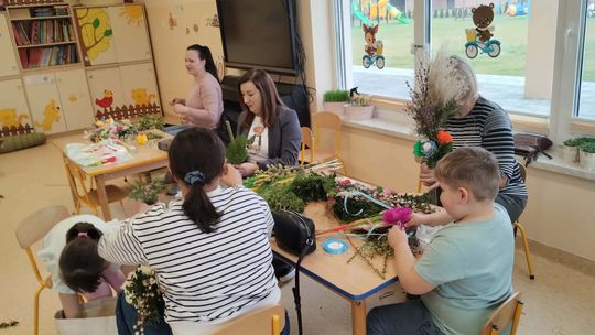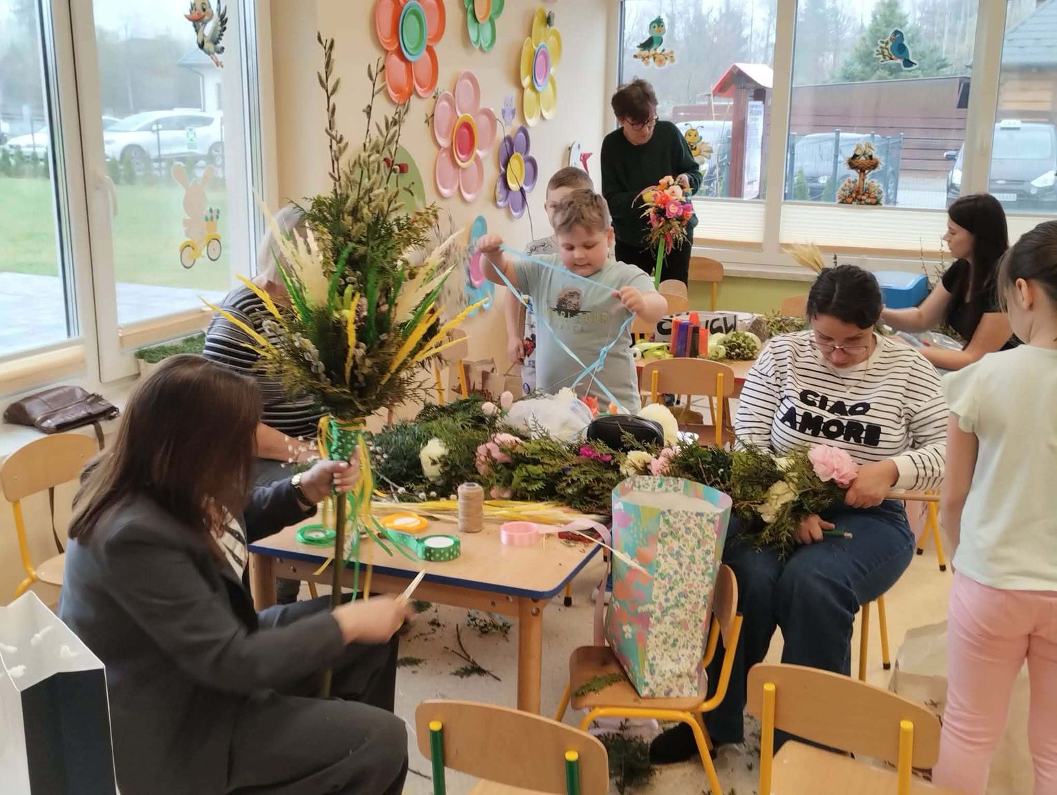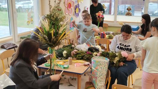 Spotkanie przebiegło w radosnej i twórczej atmosferze. Najmłodsi z ogromnym zaangażowaniem przygotowywali kolorowe palmy, a wspólna praca była nie tylko okazją do zabawy, ale również do pielęgnowania pięknych, polskich tradycji wielkanocnych.
