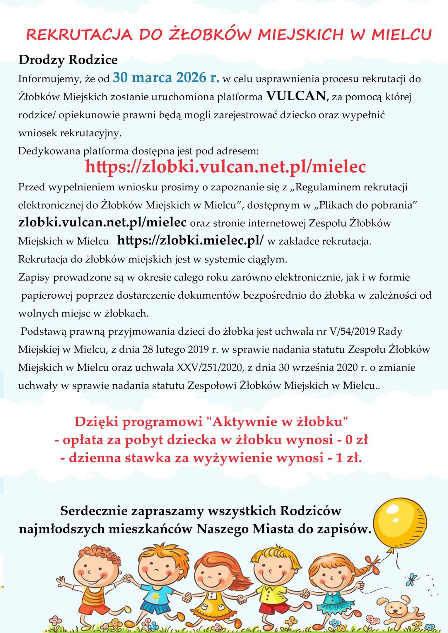 Dedykowana platforma dostępna jest pod adresem: https://zlobki.vulcan.net.pl/mielec