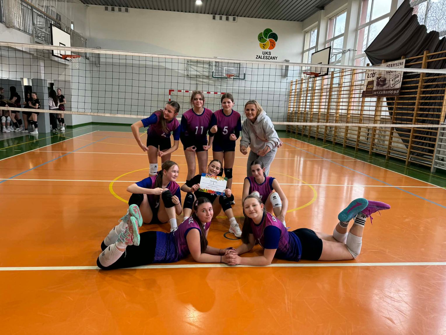 Ogromne brawa dla całej drużyny- Marika Szwaja, Kinga Pietras, Maja Kozik, Natalia Walas, Zuzanna Madycka, Hanna Nowak - Marcoń, Gabriela Kozioł, Oliwia Jachyra. Trener- B. Cetnar Przekazano podziękowania dla wspierających drużynę.
