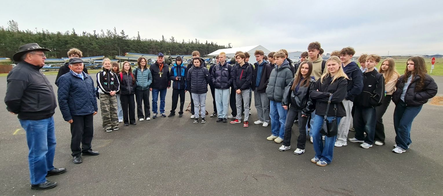 Dla uczniów II LO w Mielcu wycieczkę zorganizował Prezes Klubu Miłośników Lotnictwa w Mielcu Zbigniew Wicherski.
