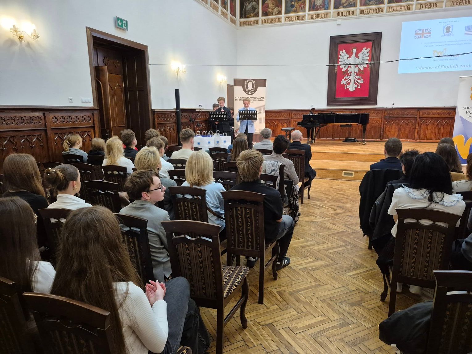 W Sali Królewskiej Państwowej Szkoły Muzycznej w Mielcu odbyła się wyjątkowa gala podsumowująca V Powiatową Olimpiadę Języka Angielskiego „Master of English 2026”. W wydarzeniu organizowanym przez I Liceum Ogólnokształcące im. Stanisława Konarskiego w Mielcu i objętym honorowym patronatem Prezydenta Miasta Mielca udział wzięli uczniowie, nauczyciele i dyrektorzy szkół ponadpodstawowych z całego powiatu mieleckiego.