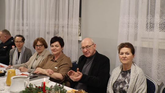 Po zakończeniu części oficjalnej odbyło się spotkanie wigilijno-opłatkowe, podczas którego wszyscy uczestnicy goście, młodzież, rodzice i dzieci – symbolicznie podzielili się opłatkiem, składając sobie życzenia dalszego rozwoju, wytrwałości, zdrowia oraz skuteczności w działaniach dla całej Młodzieżowej Drużyny Pożarniczej. W świątecznej atmosferze na stołach zagościły tradycyjne potrawy. Młodzież MDP wspólnie z zaproszonymi gośćmi śpiewała kolędy.
