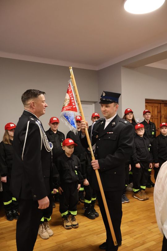 W uroczystości wzięli również udział opiekunowie Młodzieżowej Drużyny Pożarniczej z zaprzyjaźnionej jednostki OSP Trzciana (gmina Czermin) – druhna Anna Miraś oraz druh Grzegorz Cisło, a także licznie zgromadzeni mieszkańcy, rodzice, młodzież i dzieci.