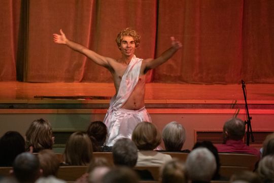 Aktorzy Teatru „Rozmaitości” na scenie w SCK Mielec.