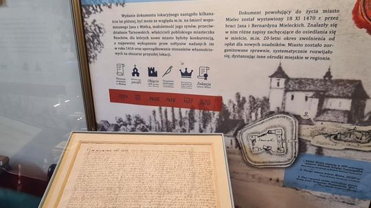 - Papierowa kopia aktu lokacyjnego Mielca udostępniona zwiedzającym Pałacyk Oborskich.